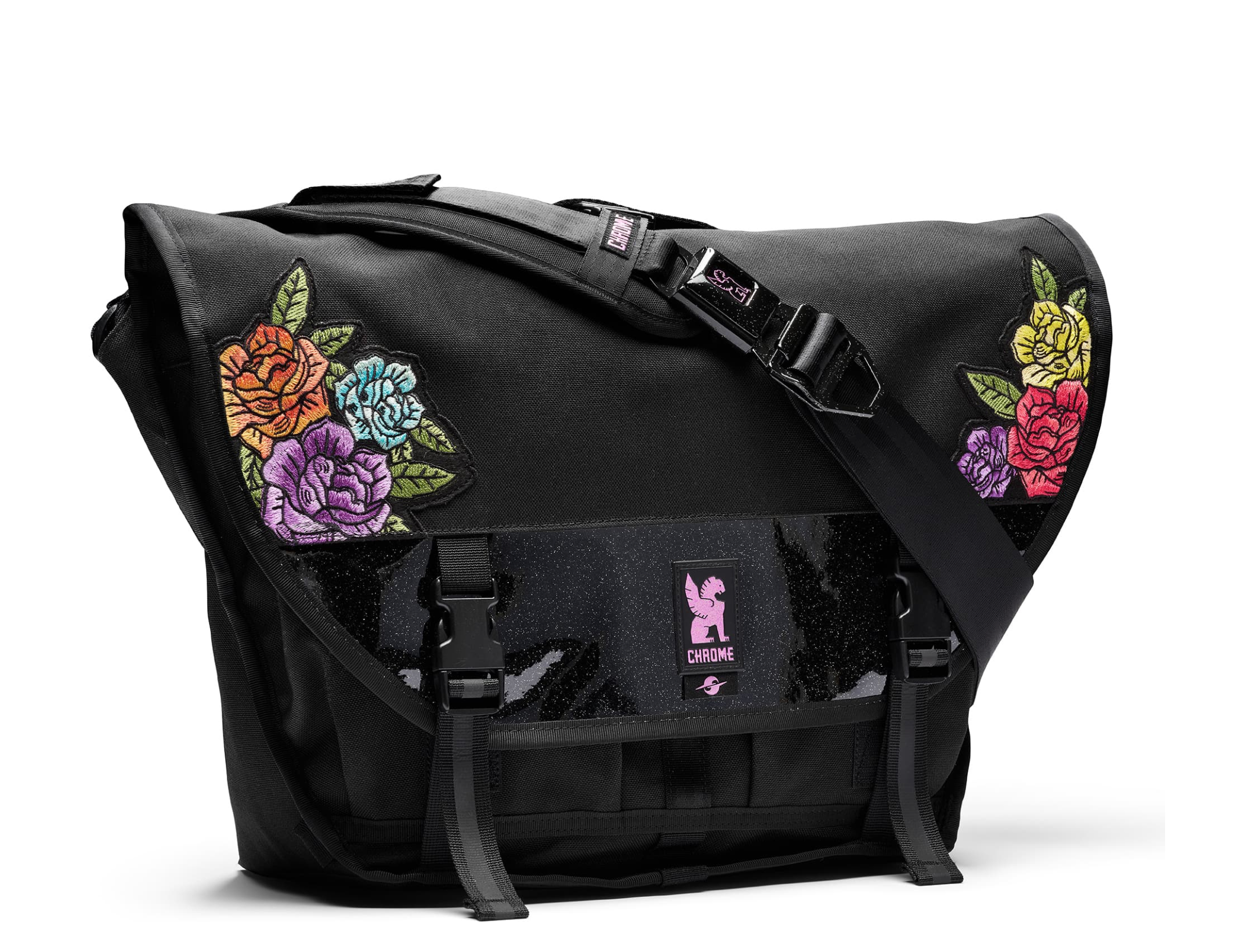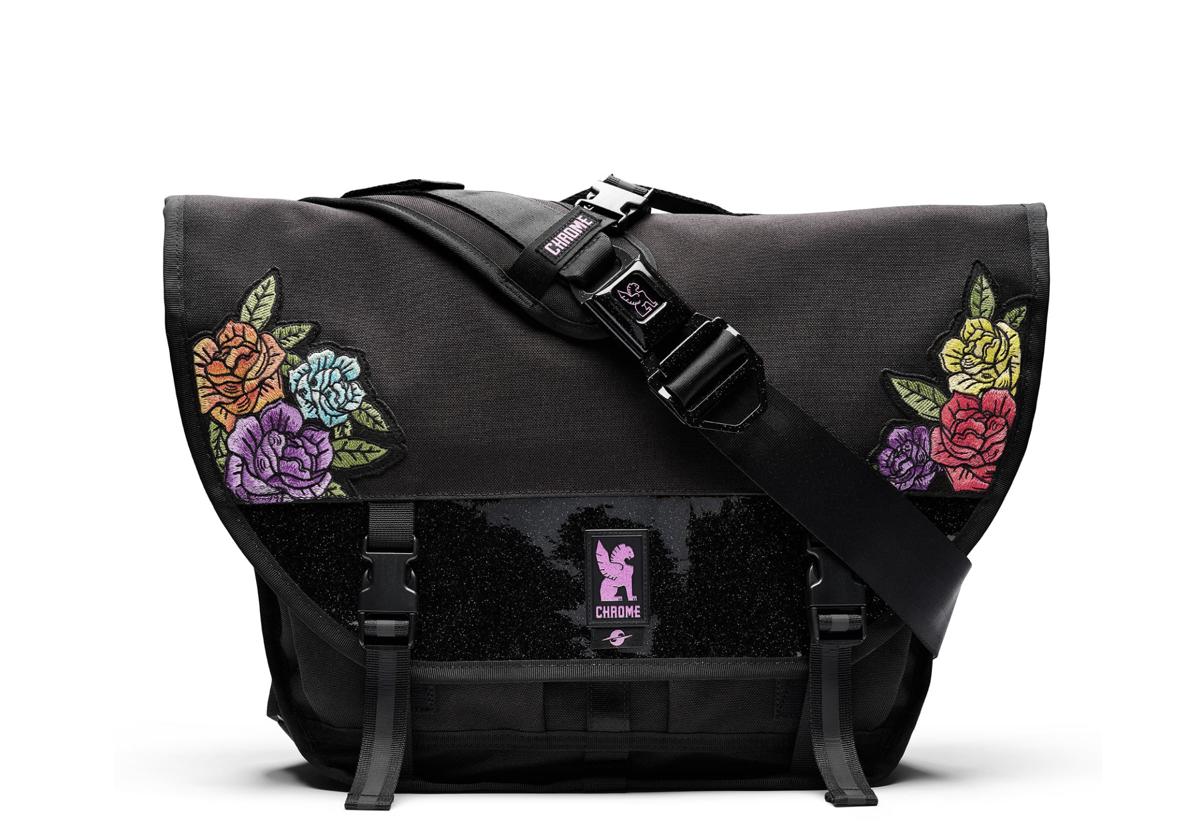 The special edition Chrome x Rio Citizen 15L in Rio Rose Black has embroidered rainbow roses, a custom bandana print liner, a commemorative patch, and a unique glitter buckle. A portion of the proceeds will benefit Somos Familia Valle, a grassroots organization dedicated to supporting, empowering, and mobilizing families and allies for racial, gender, and economic justice in the San Fernando Valley.