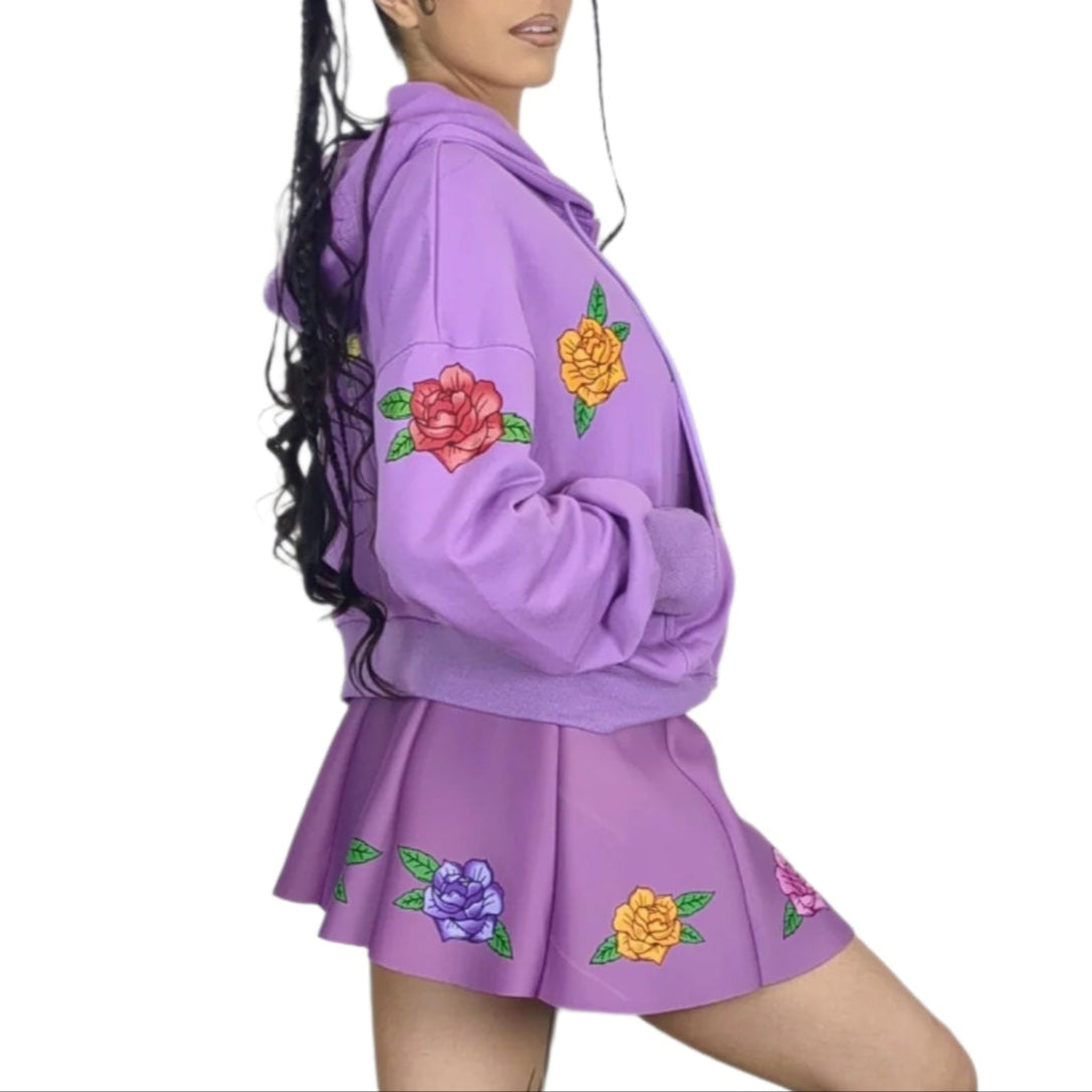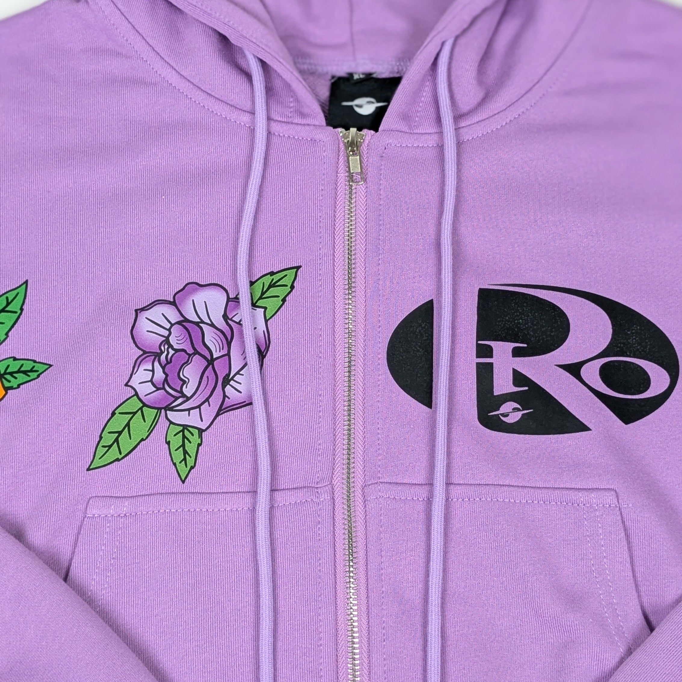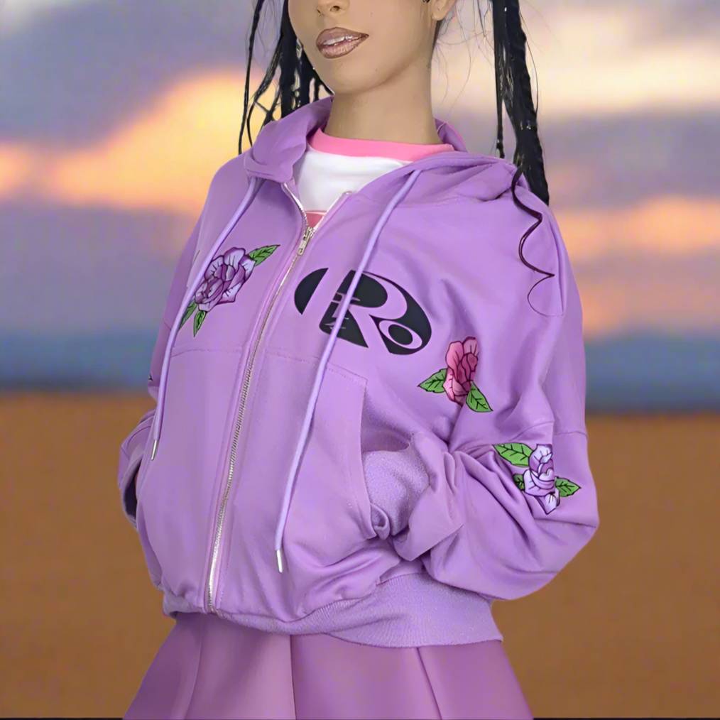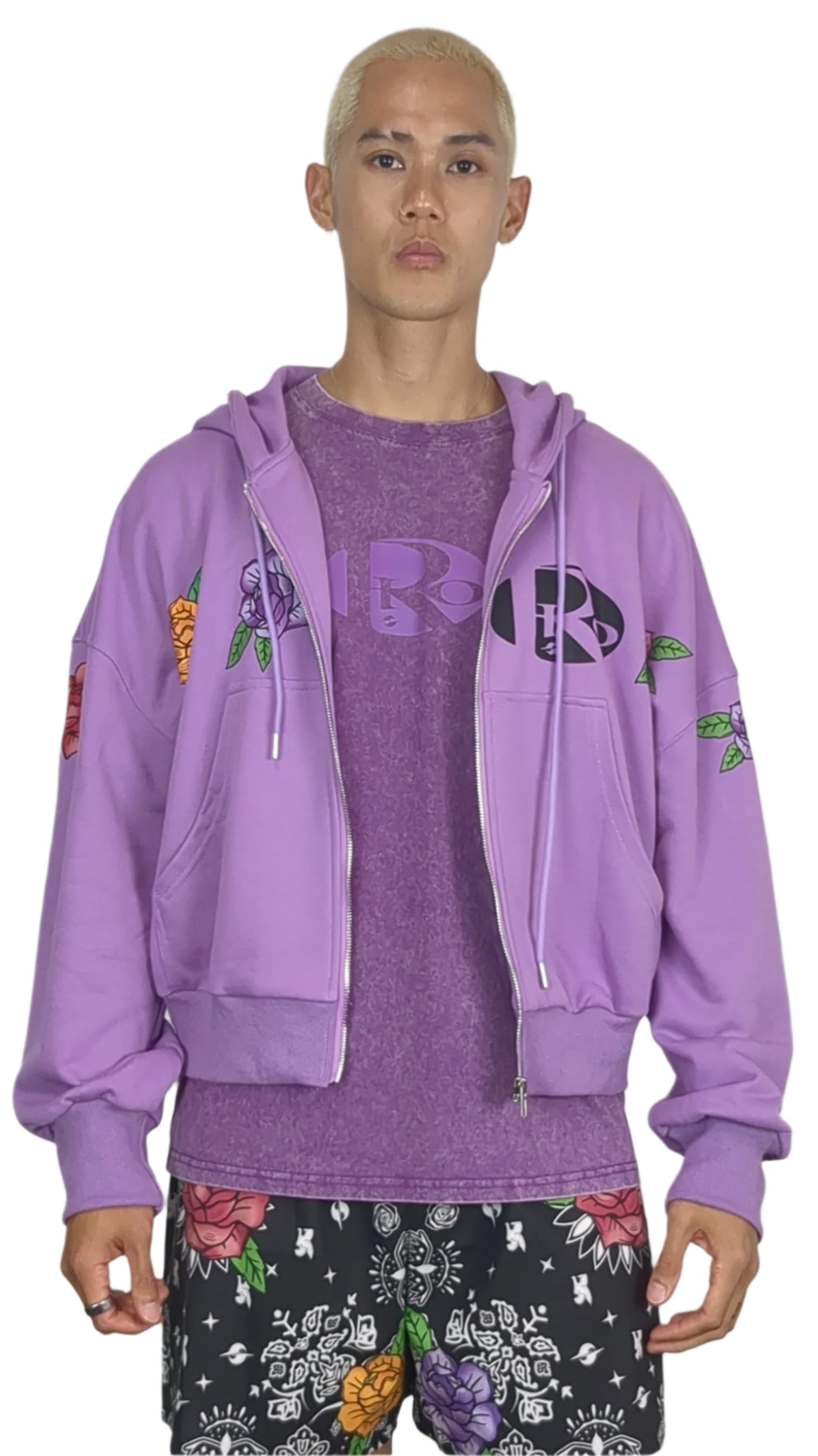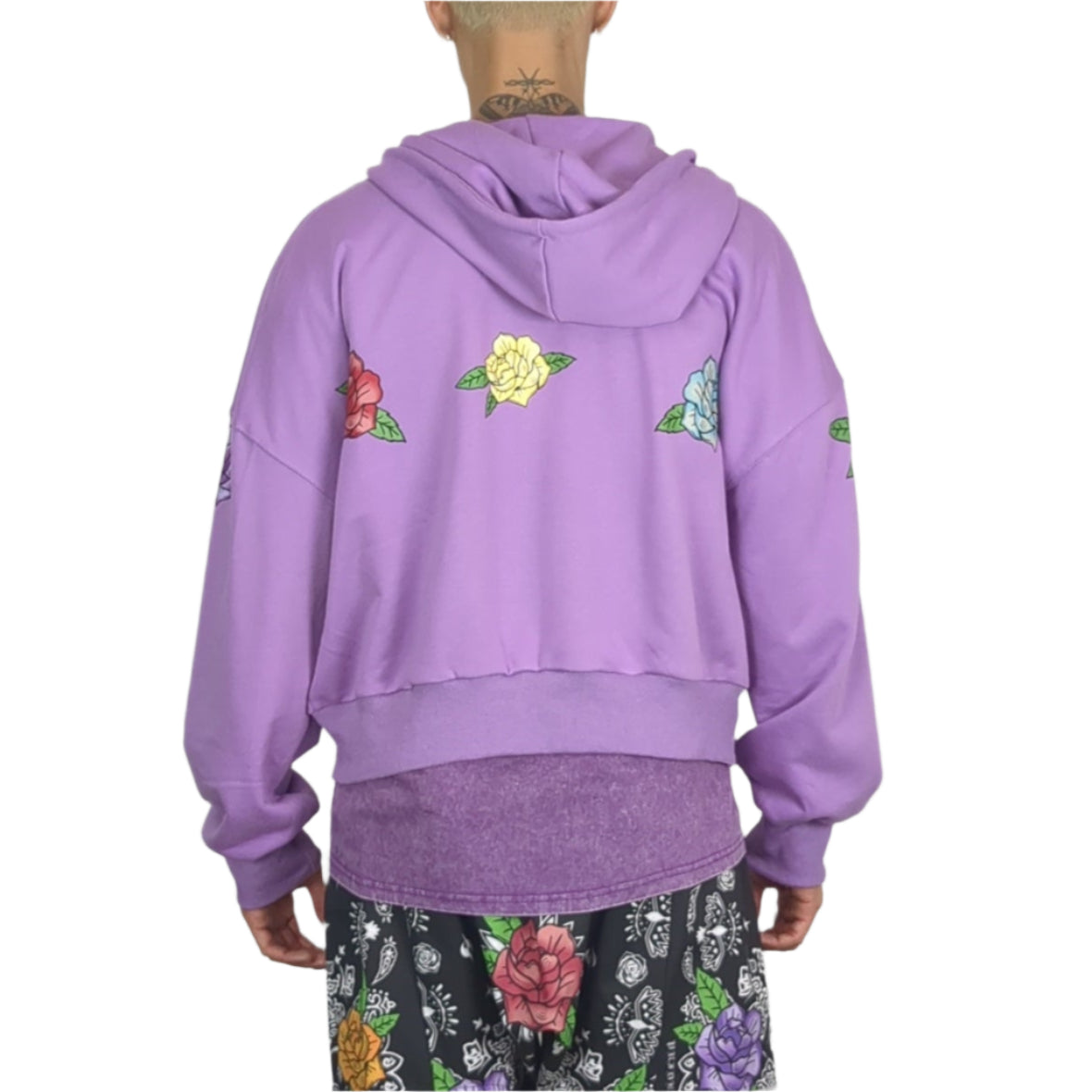 CROPPED ZIP HOODIE • PURPLE ROSES