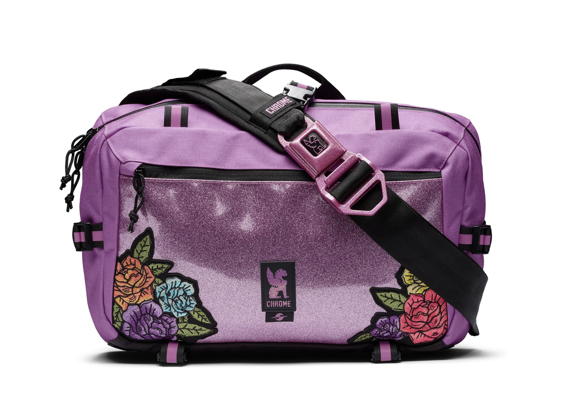 The special edition Chrome x Rio Kadet Max in Rio Rose Pink & Rio Rose Black has embroidered rainbow roses, a custom bandana print liner, a commemorative patch, and a unique glitter buckle. A portion of the proceeds will benefit Somos Familia Valle, a grassroots organization dedicated to supporting, empowering, and mobilizing families and allies for racial, gender, and economic justice in the San Fernando Valley.