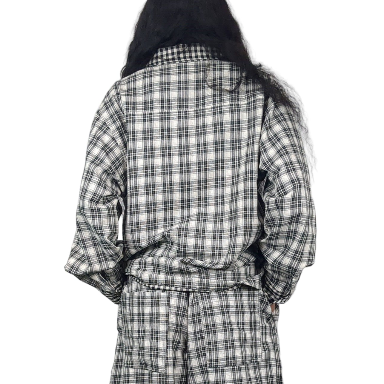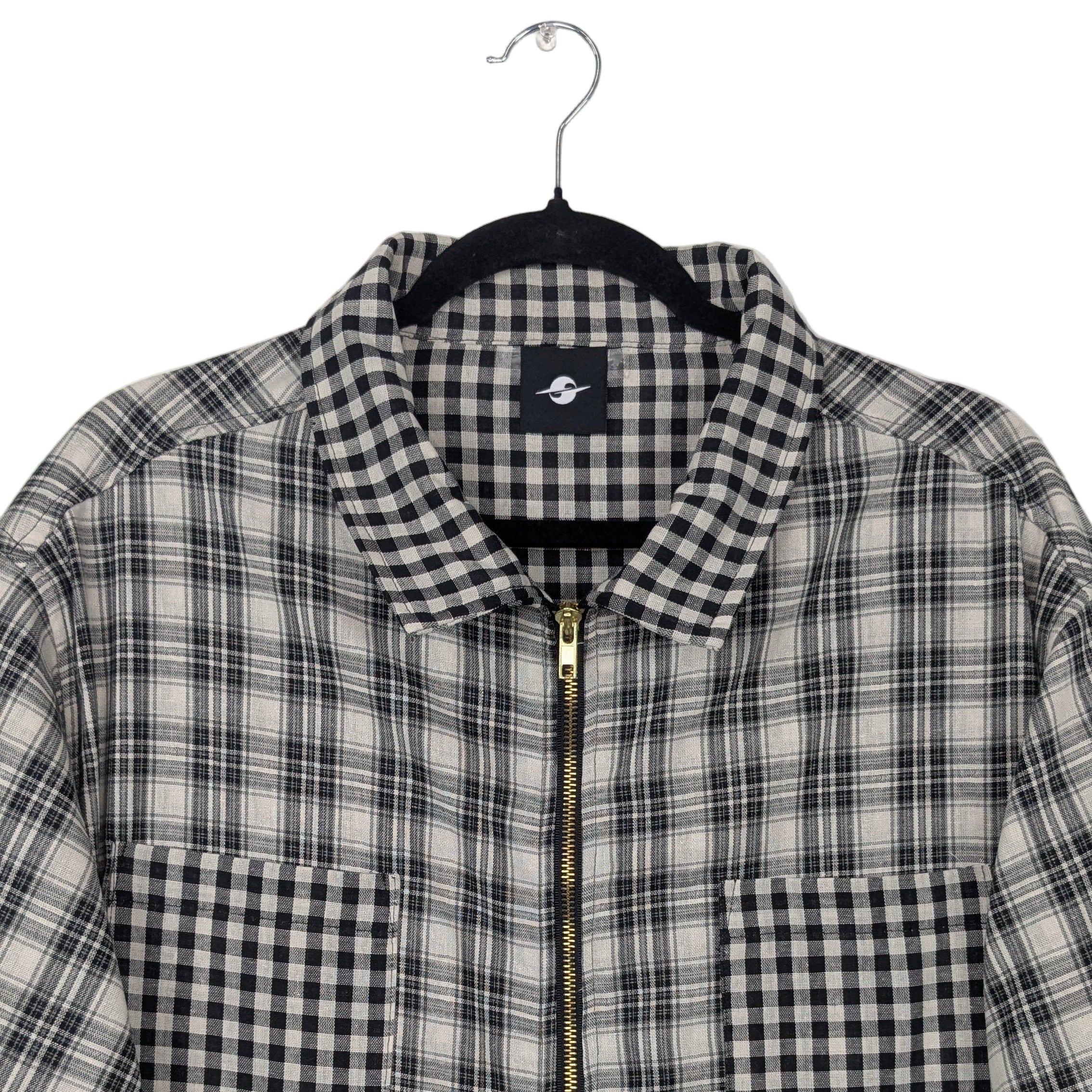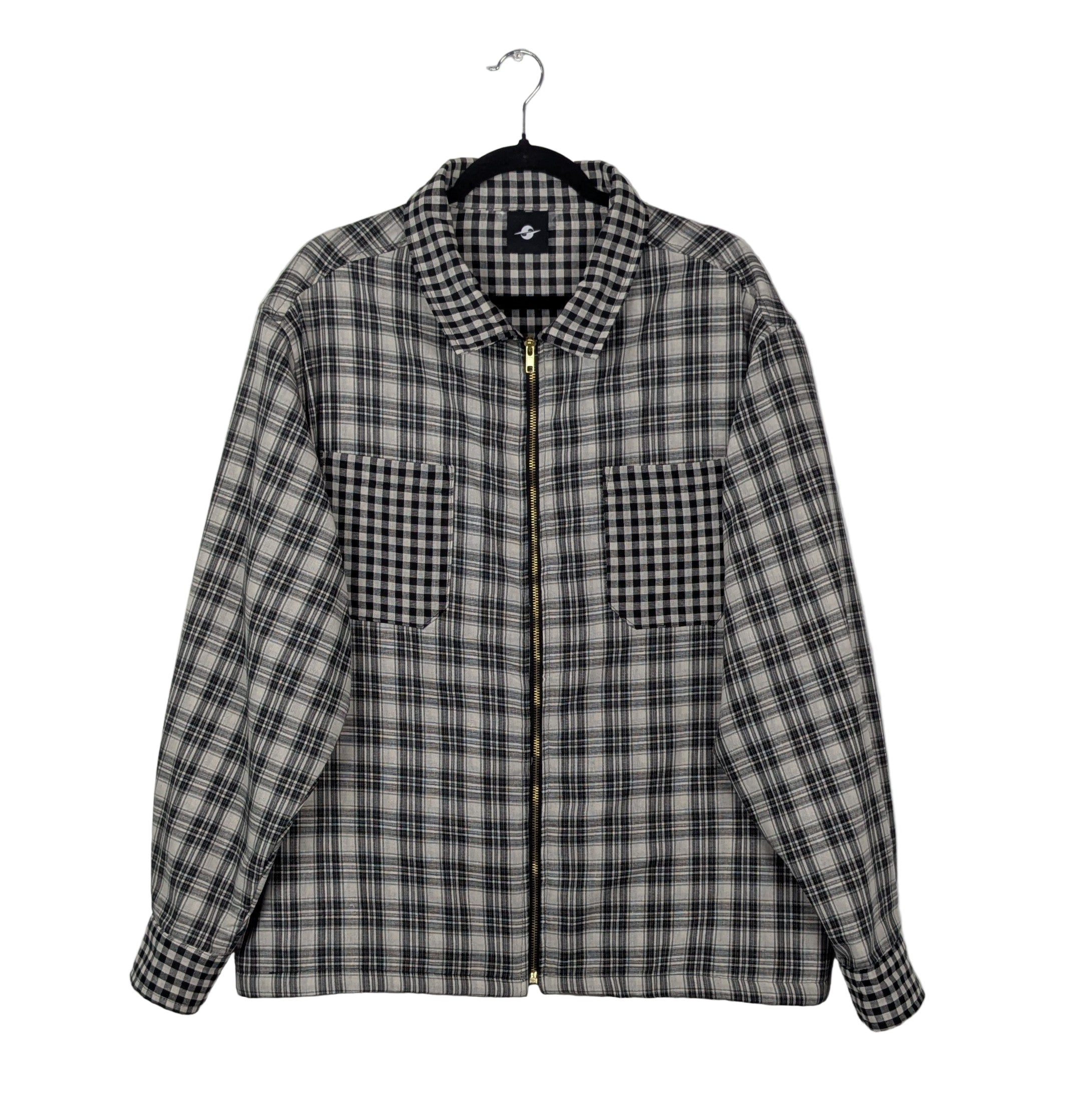 This Spring/summer 2026 windbreaker is crafted from a light weight cotton and linen blend. The black and grey tartan design is a classic from the hood to the high street. Gingham collar, cuffs, and 2 front pockets add some contrast to the design. 2 more pockets built into the side seams. Self-lined.