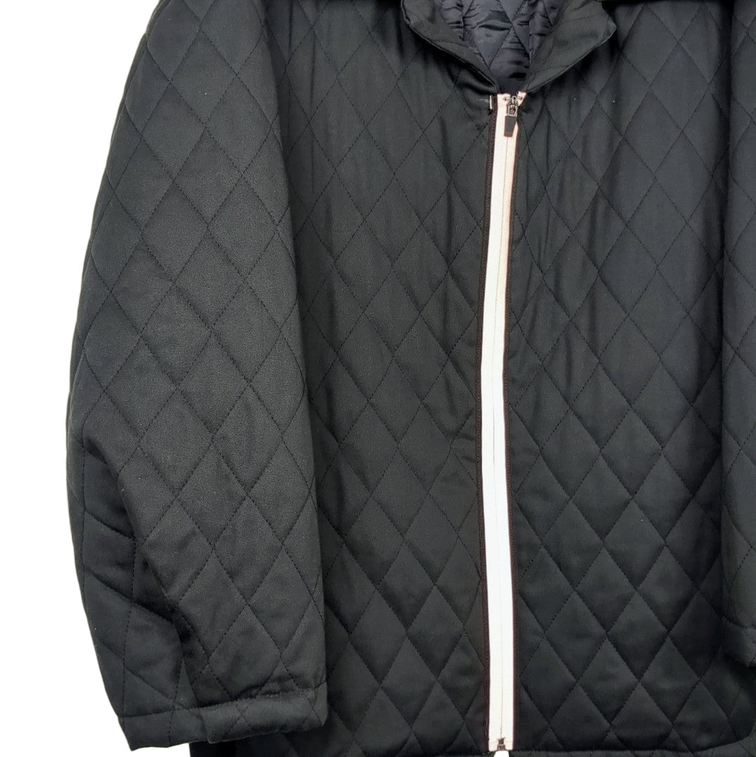 This Spring/summer 2026 Bomba is crafted from a heavy black nylon in a quilted diamond design. Dropped shoulders and pleated hemline give an oversized silhouette. Logomania label on the back yolk. Pockets built into the side seams. Self-lined.