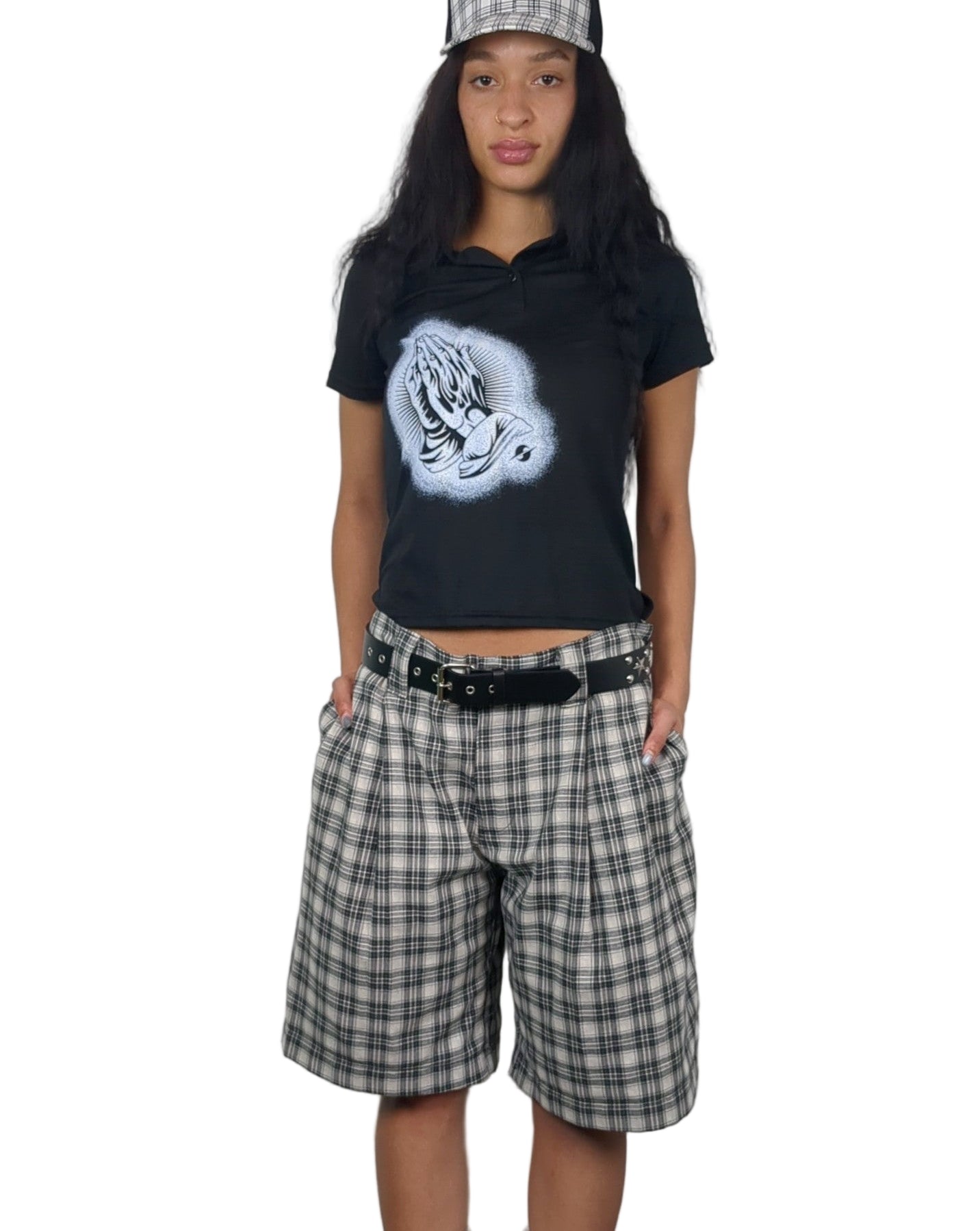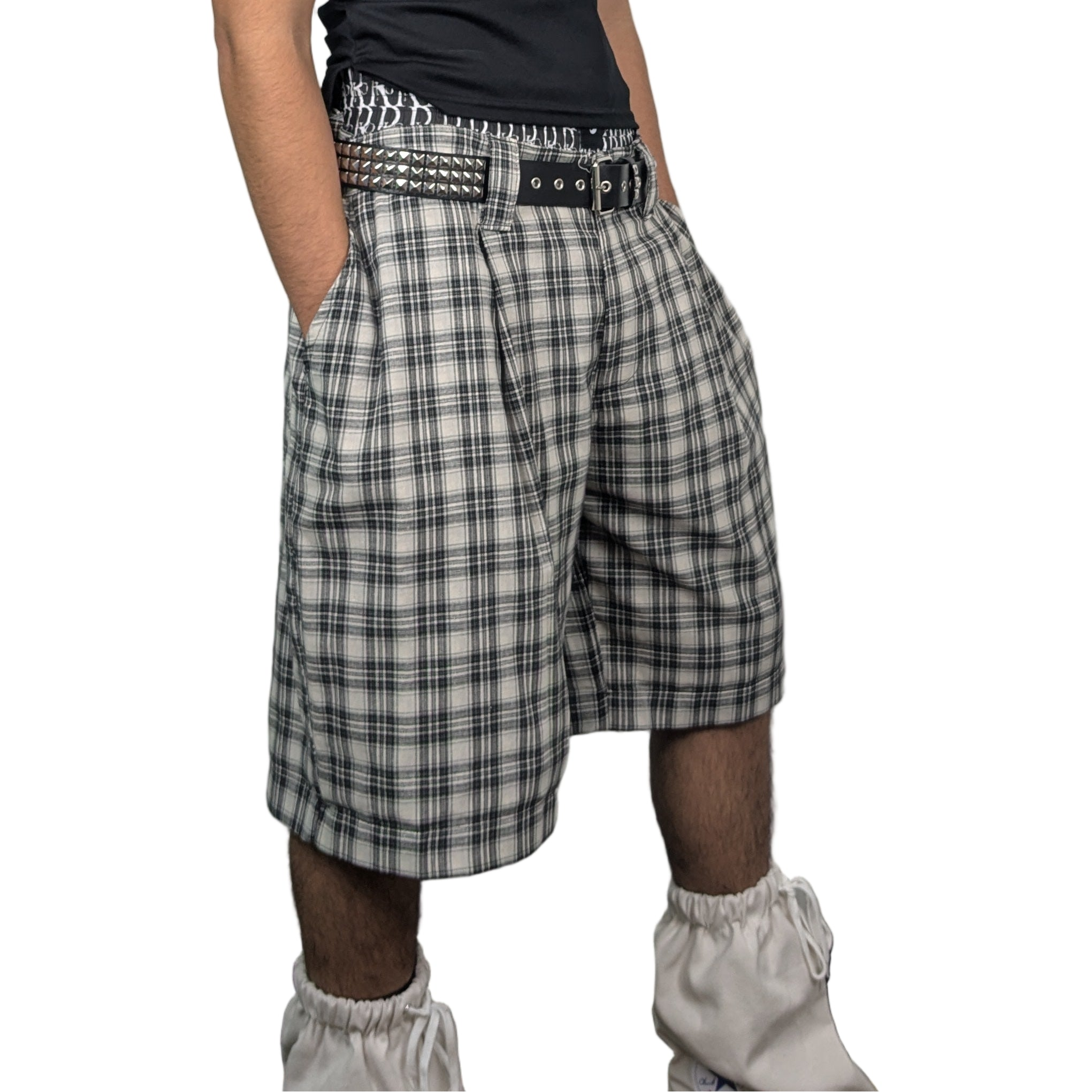 The Spring/summer 2026 Cholo shorts are crafted from a light weight linen and cotton blend. The black and grey tartan design is a classic from the hood to the high street. The wide leg cut hits just below the knee. 4 deep pockets, to carry all of your essentials. Zipper fly. Self-lined. Logomania patch on the back.